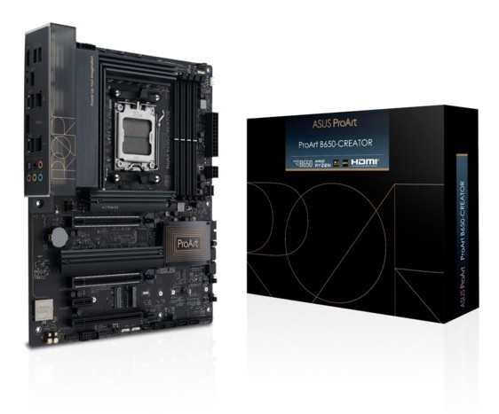 Asus ProArt B650-Creator, AMD AM5, ATX, 4xDDR5, 2xPCI Express, 3xM.2 + SATA3 RAID, HDMI/USB-C, USB-C, GigaLAN+2.5Gbe LAN