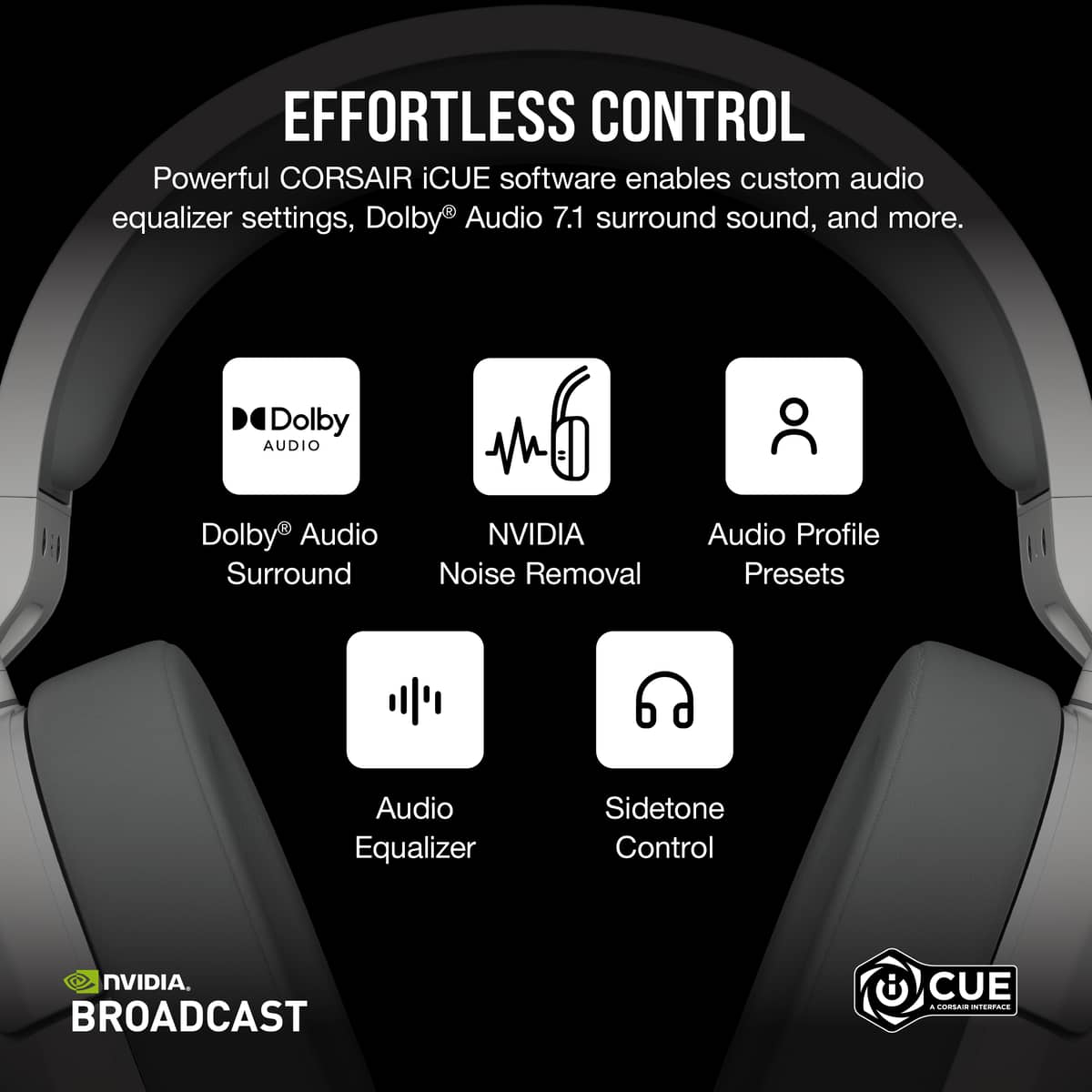 Corsair HS55 Wireless Gaming Headset, RF/Bluetooth, 7.1 surround - White