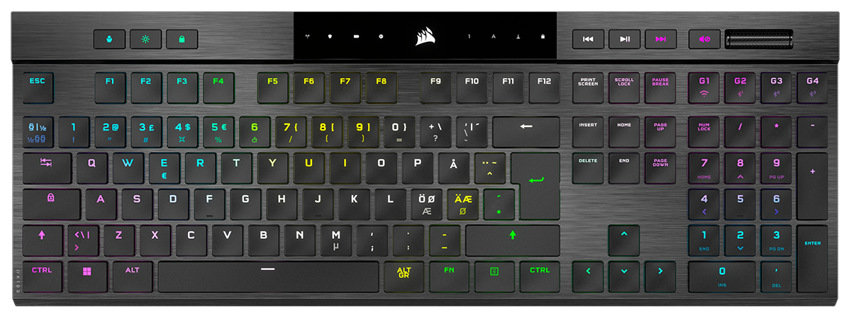 Corsair Gaming K100 Air Wireless, Cherry MX Ultra Low Profile Tactile, RGB, RF/Bluetooth/USB-C, nordiskt - Svart