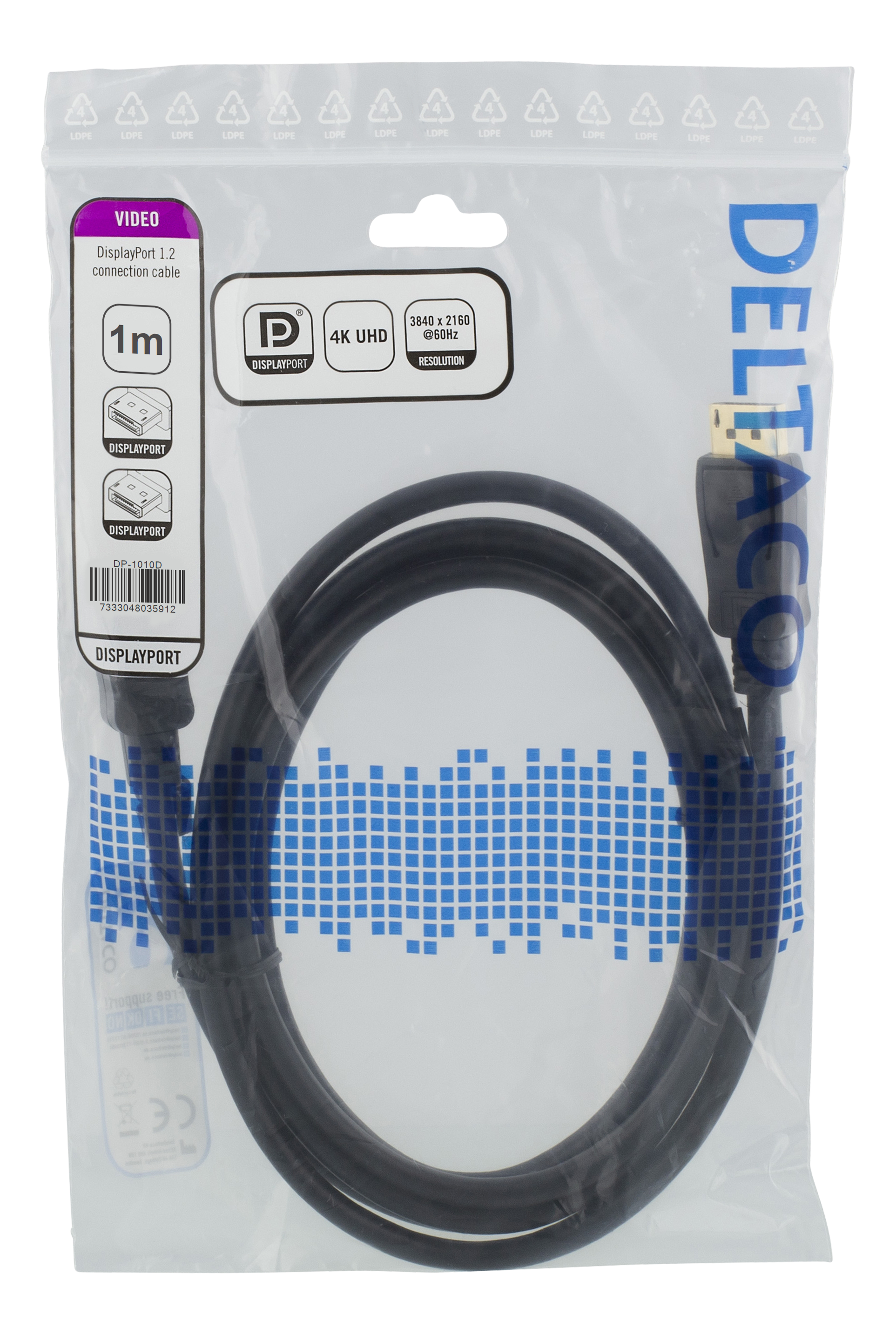 DisplayPort-kabel, DP 1.2, 4K@60Hz, 1 meter - Svart