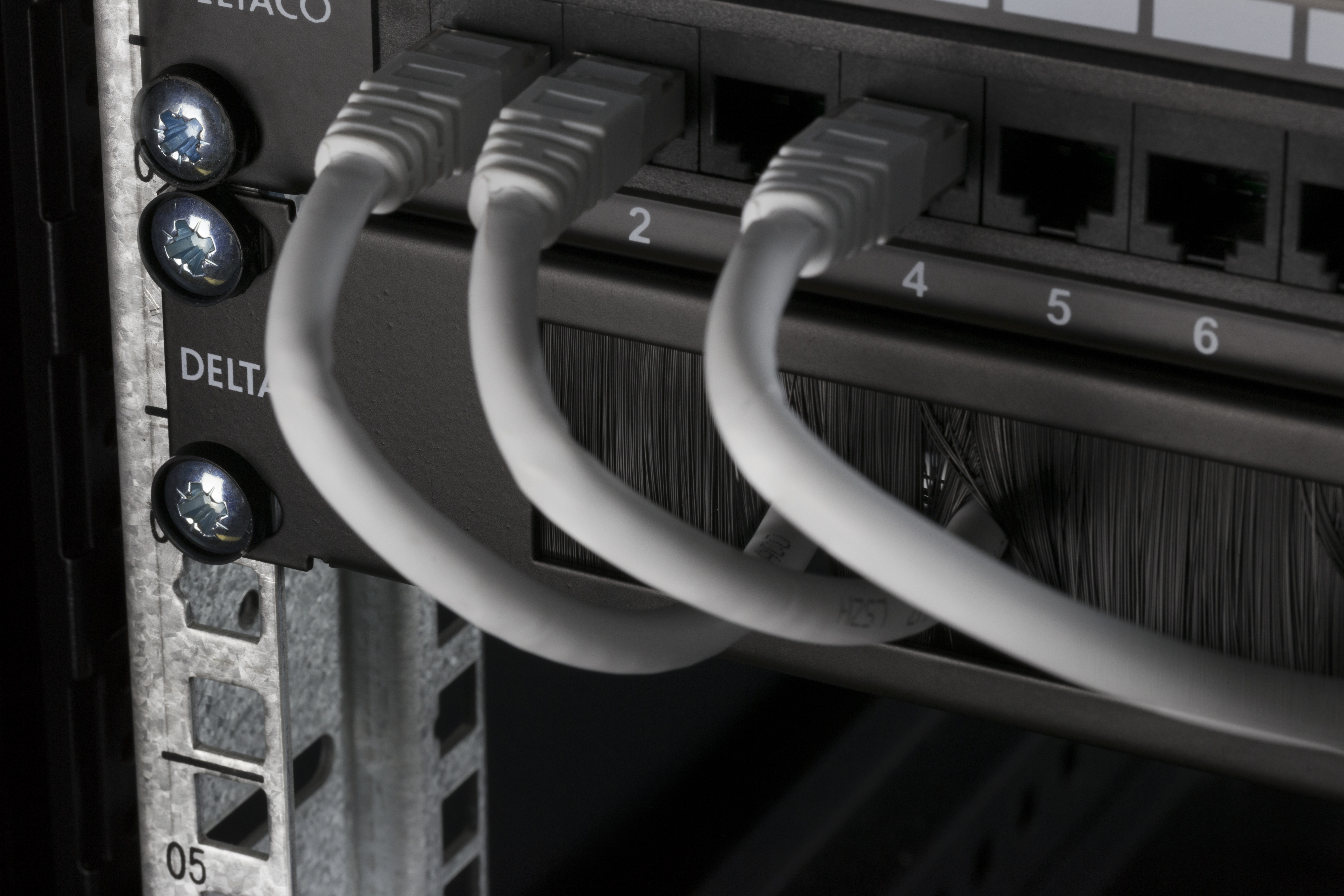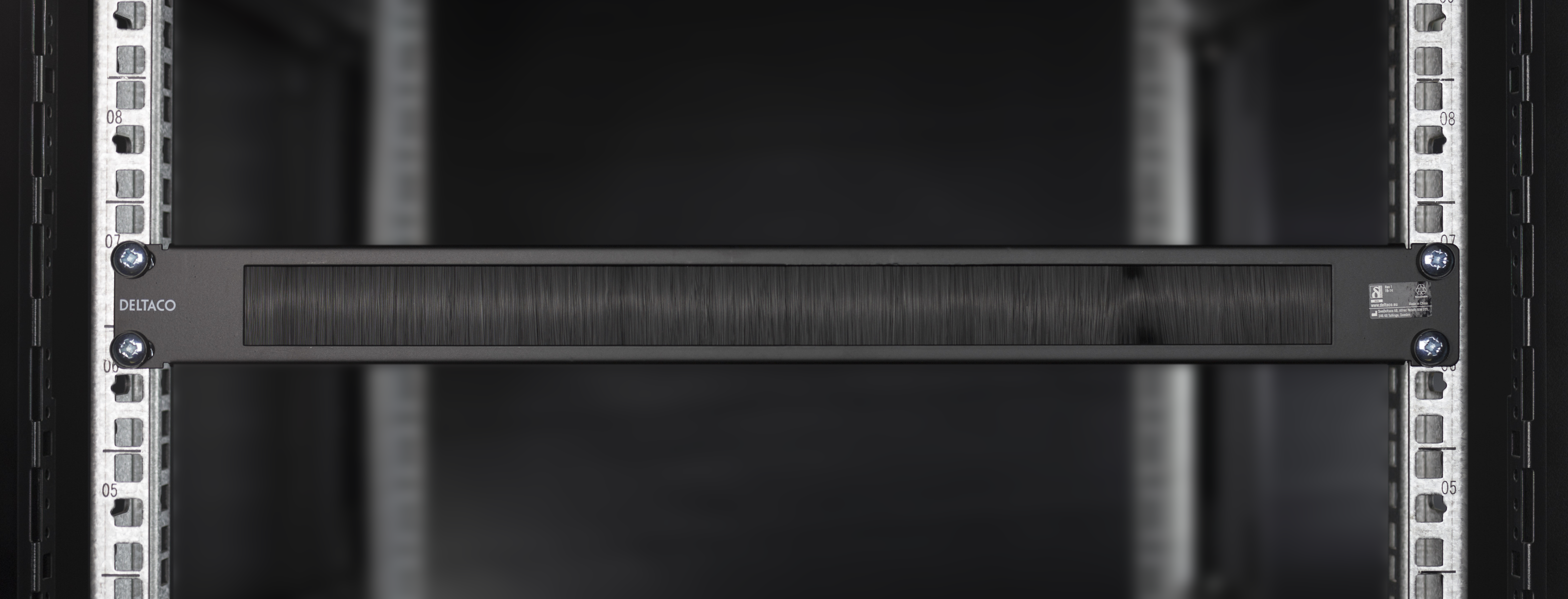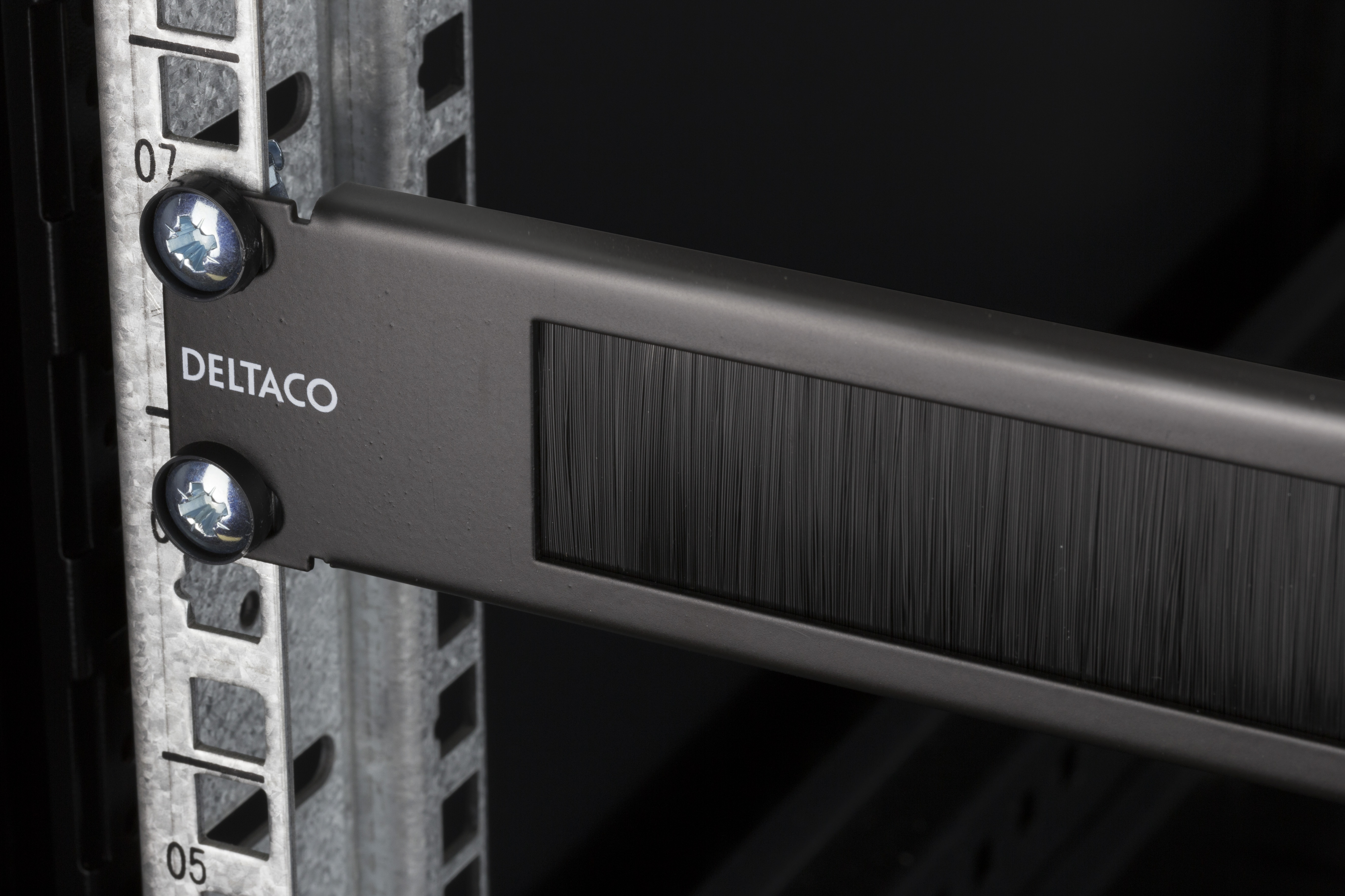 19” kabelgenomföring med borste, Deltaco, 1U, metall/nylon -svart