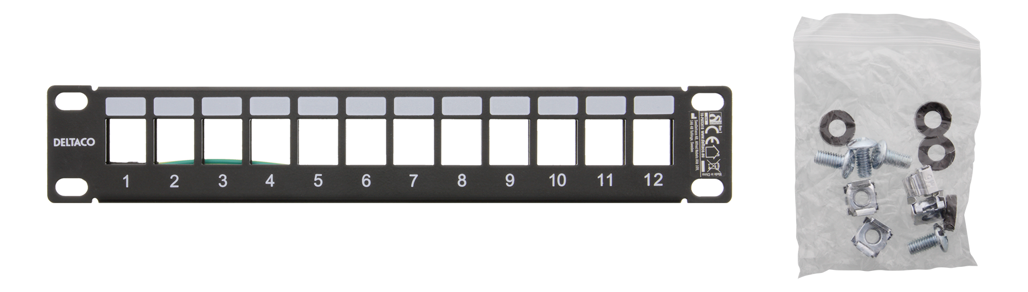 • Tillverkad av tålig metall • 12 universella Keystone-portar • 12mm c-c mått mellan Keystone-portarna