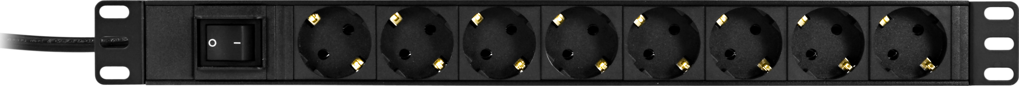 19" Grenuttag DELTACO, 8 uttag, brytare, 3m kabel, rackmontage 1U - Svart