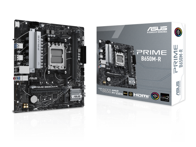 Asus PRIME B650M-R, AMD AM5, MicroATX, 2xDDR5, PCI Express, 2xM.2 + SATA3 RAID, HDMI, USB-C (front), 2.5Gbe LAN, Aura Sync RGB