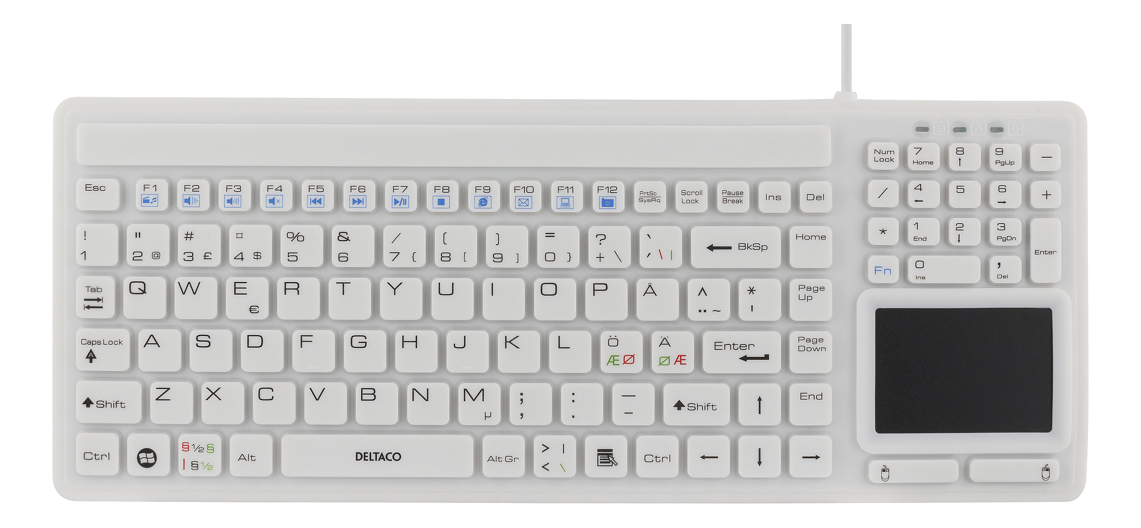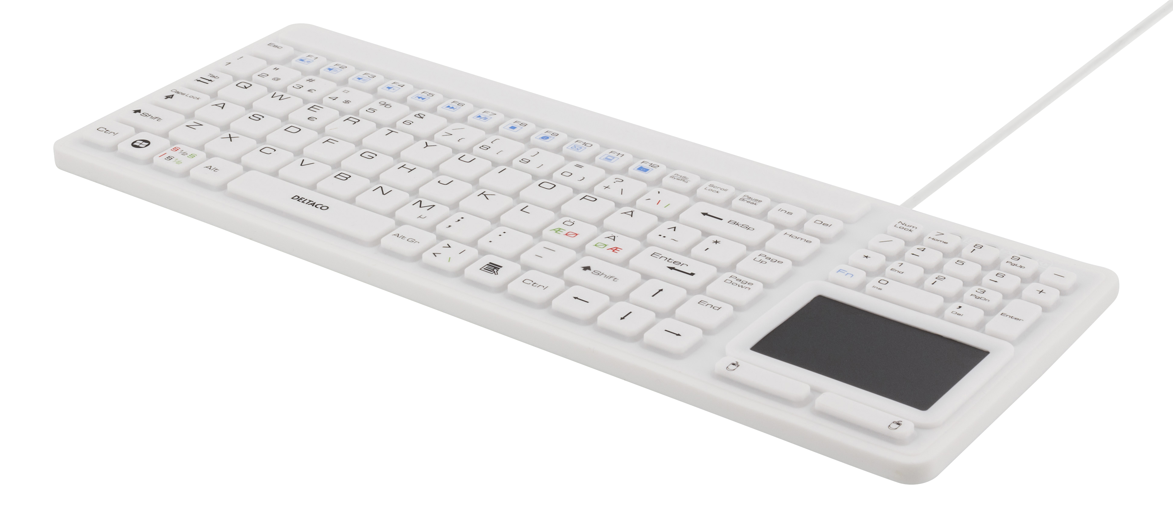 DELTACOS tangentbord i silikon med touchpad är perfekt för din arbetsplats. På grund av dess IP68 klassning är den spill och dammsäker.