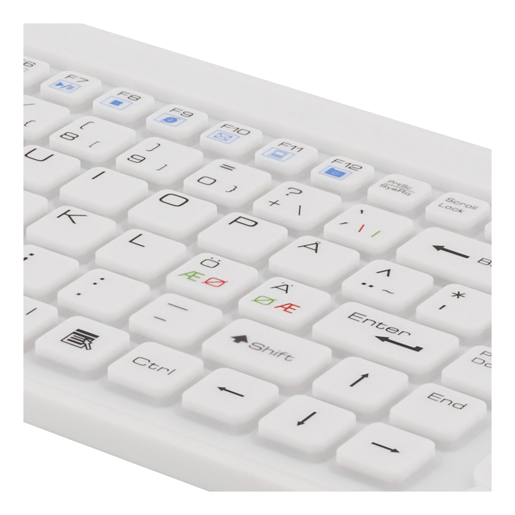 • Ett speciellt utformat industriellt tangentbord med touchpad, robust och vattentätt, tillverkat av silikon