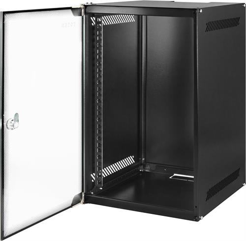 10"-väggskåp, Toten, 9U, låsbar glasdörr, omonterat - svart