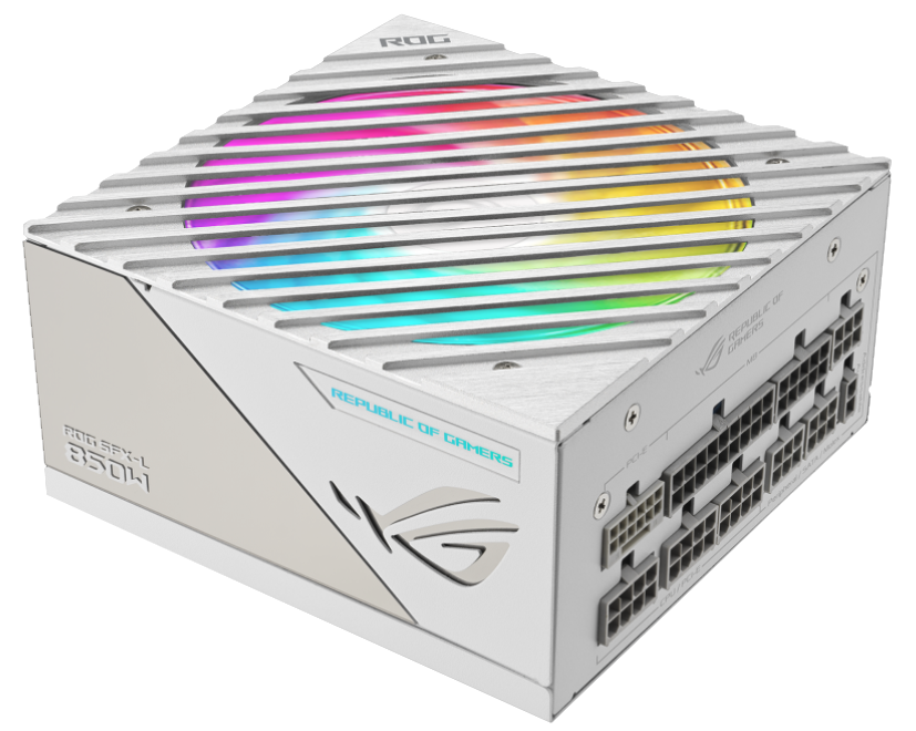 Asus ROG Loki SFX-L 850W White Edition, 120 mm fläkt, 80PLUS Platinum, semipassivt, löstagbara kablar, Aura Sync ARGB - Vit