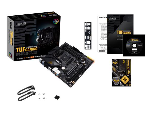 Asus TUF GAMING B550M-PLUS, AMD Socket AM4, B550, MicroATX, 4xDDR4, CrossFireX, 2xPCI Express, 2xM.2 + SATA3 RAID, HDMI/DP, 7.1-ljud, USB-C, GigaLAN, Aura RGB