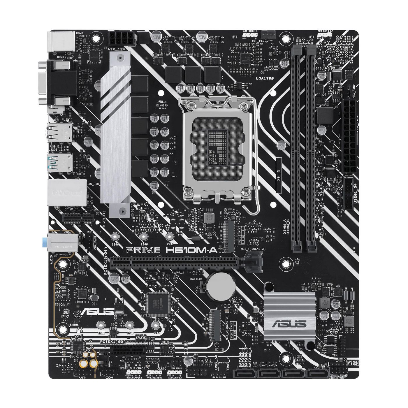 Asus Prime H610M-A-CSM, Intel LGA1700, PCI Express, MicroATX, 2xDDR5, 2xM.2 + SATA3, VGA/HDMI/DP, USB 3.2, GigaLAN, Aura Sync RGB