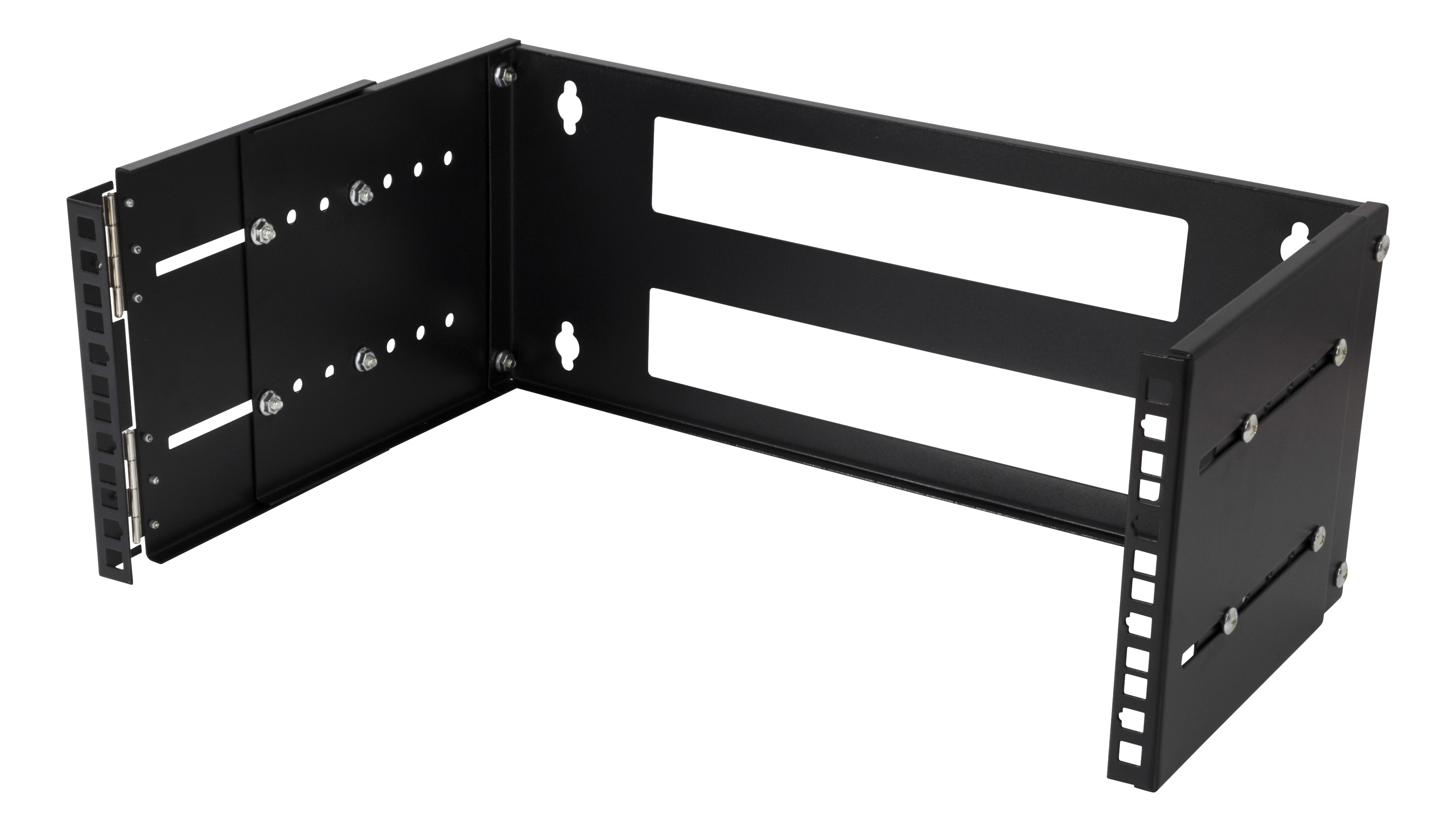 19” Väggstativ 4U, Deltaco, justerbart djup 200-320mm, gångjärn, max 25kg last, stål, monteringssats - Svart