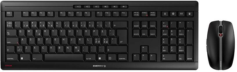 The best STREAM ever - wireless and with charging capability.The CHERRY STREAM DESKTOP RECHARGE is a high-quality new addition to the STREAM Family with many valuable features for both professional and home-office use. As with all products in the STREAM family, it has the proprietary CHERRY SX scissor mechanism at its heart. A charging function and AES encryption round off the 2.4 GHz wireless keyboard and accompanying wireless mouse perfectly. Maximum productivity: Super silent keystroke CHERRY SX scissor mechanism Mouse buttons with a quiet click 3-level adjustable mouse sensor with up to 2,400 dpi Highest quality: Rubberized feet for perfect slip resistance Integrated metal plate for maximum torsional rigidity Blue Angel ecolabel Durable key labels Keyboard and mouse with AES-128 encryption Optimum operating comfort: NiMH batteries rechargeable via USB-C (GP ReCyko+) in mouse and keyboard Status LEDs show low residual battery charge, charging status and mouse