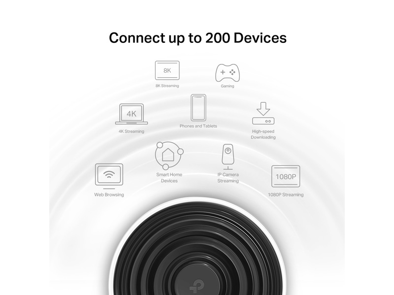 • Sann tri-bandhastighet – Alla tre WiFi-banden arbetar tillsammans för att släppa loss nätverkets totala hastigheter upp till 5 400 Mbps för 200 enheter†