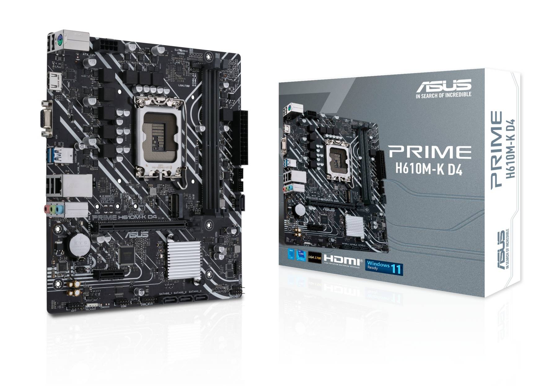 Asus Prime H610M-K D4, Intel LGA1700, PCI Express, MicroATX, 2xDDR4, M.2 + SATA3, VGA/HDMI, USB 3.2, GigaLAN