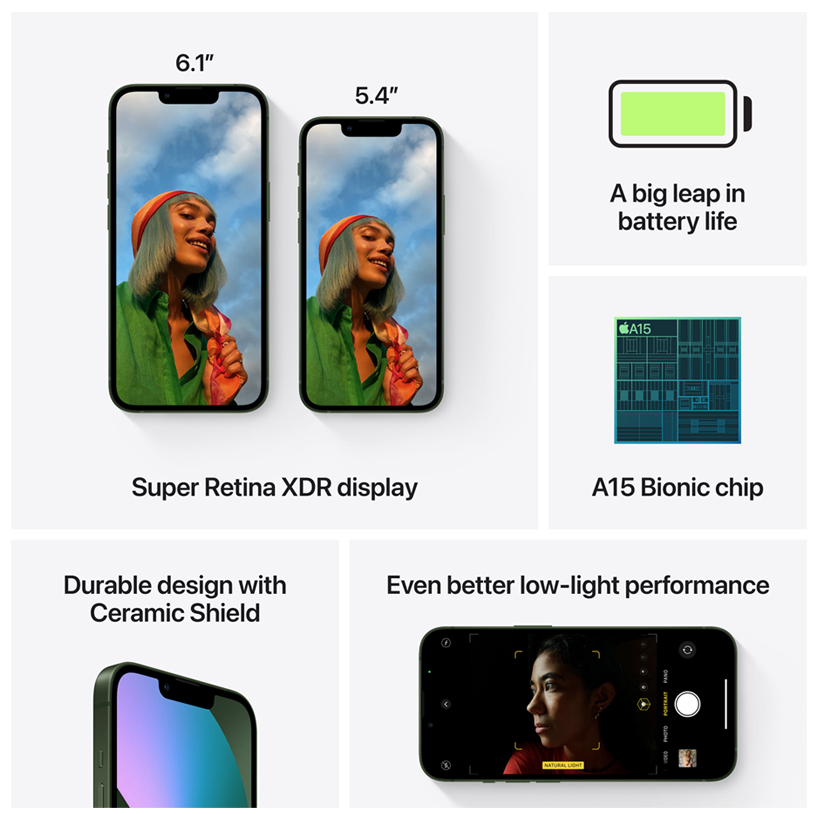 iPhone 13 är helt och hållet outstanding. Upplev det mest avancerade dubbelkamerasystemet någonsin på en iPhone. En ännu ljusare 6,1-tums Super Retina XDR-display i ceramic shield ger dig en tålig design. Blixtsnabbt A15 som ger prestanda utöver det vanliga bland annat ännu bättre batteritid.
