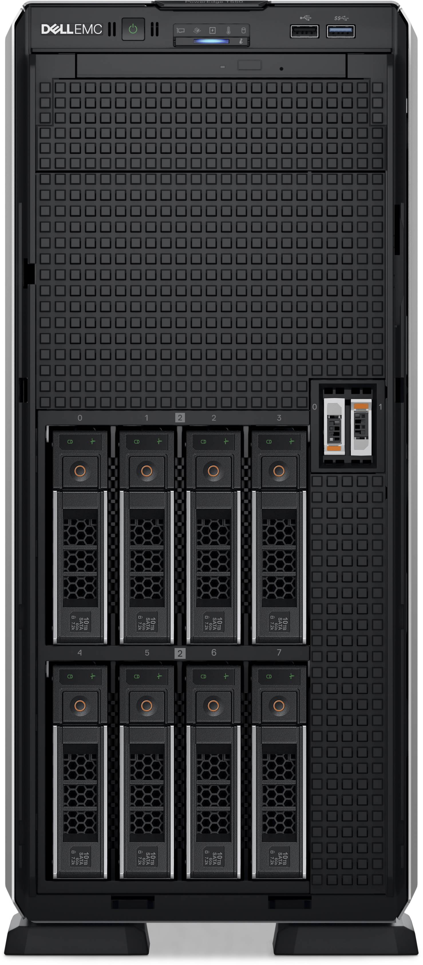 Dell PowerEdge T550, Intel Xeon Silver 4310 12-Core, 128 GB RAM, 3x960 GB + 2x240 GB SSD, 8x3.5" Hot-Swap, PERC H755, tower/rackmonterad 5U, 7 års ProSupport