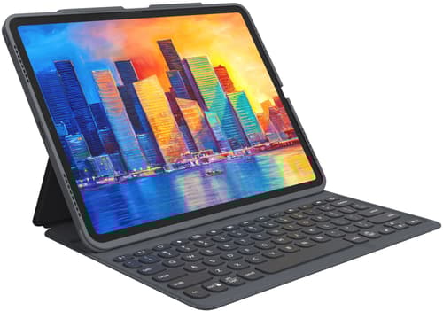 Släpp loss den produktiva förmågan hos din surfplatta med Pro Keys trådlöst tangentbord och löstagbart fodral. Det har allt du behöver för att göra vilken yta som helst till en effektiv arbetsyta. Vi har utvecklat en Pro-tangentram med mjuk och exakt tangentrörelse för snabb och exakt touchskrivning. Fodralet gör att din stylus kan fästas magnetiskt på din iPad. Och vi har inkluderat allt extra för en perfekt användarupplevelse, inklusive framåtriktade högtalarutskärningar, bakgrundsbelysta tangenter och ett justerbart stativ.