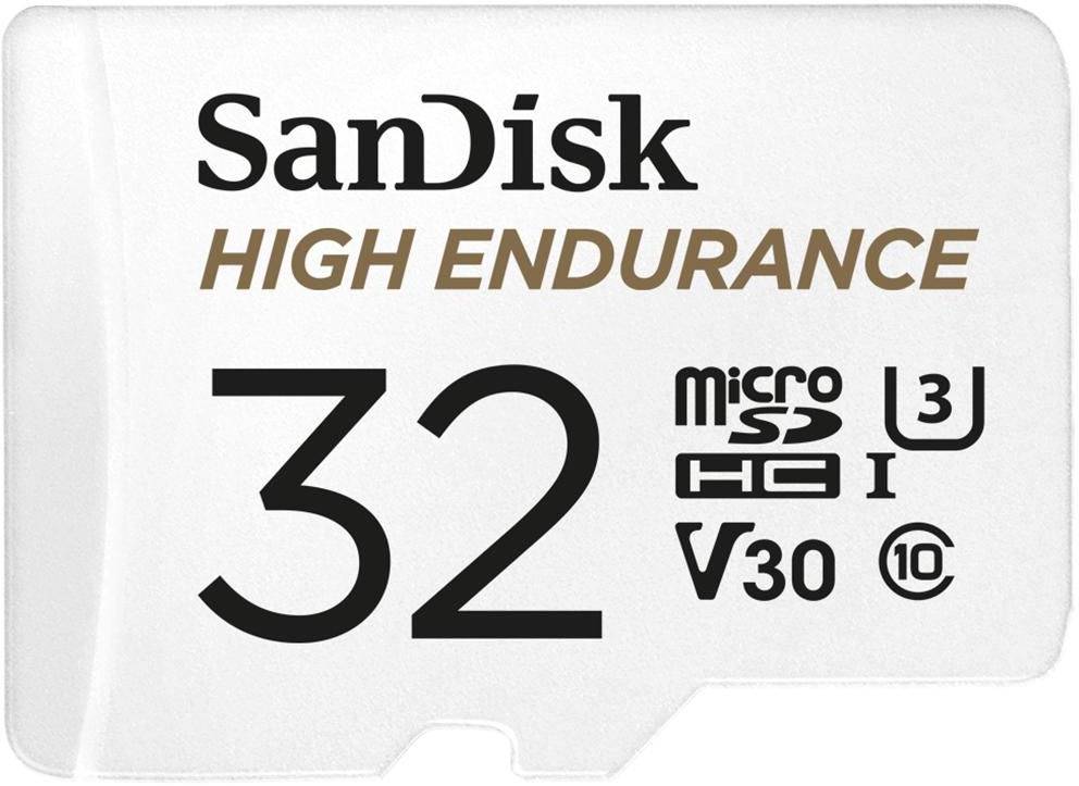 Micro Secure Digital SDHC 32 GB Sandisk High Endurance, 100/40 MB/sek, UHS-I U3 Class10 V30, inkl. SD-adapter