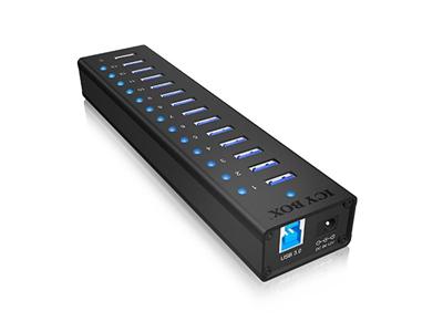 USB 3.0-hub ICY BOX IB-AC6113, 14xUSB 3.0, aluminium, inkl. strömadapter - Svart