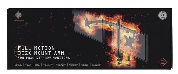 Komplettera ditt gaming-rigg med ett vridbart och svängbart bildskärmsfäste för inte en, men två 13-32-tums skärmar! Frigör plats på ditt skrivbord och anpassa varje skärm så att den passar din synvinkel och position samtidigt som du håller alla kablarna snyggt ur vägen med den inbyggda kabelhanteringen. Den slitstarka stålkonstruktionen tillåter dig att enkelt installera - med avtagbara VESA 75x75 och 100x100-fästen två - skärmar upp till 8kg vardera (16kg totalt).