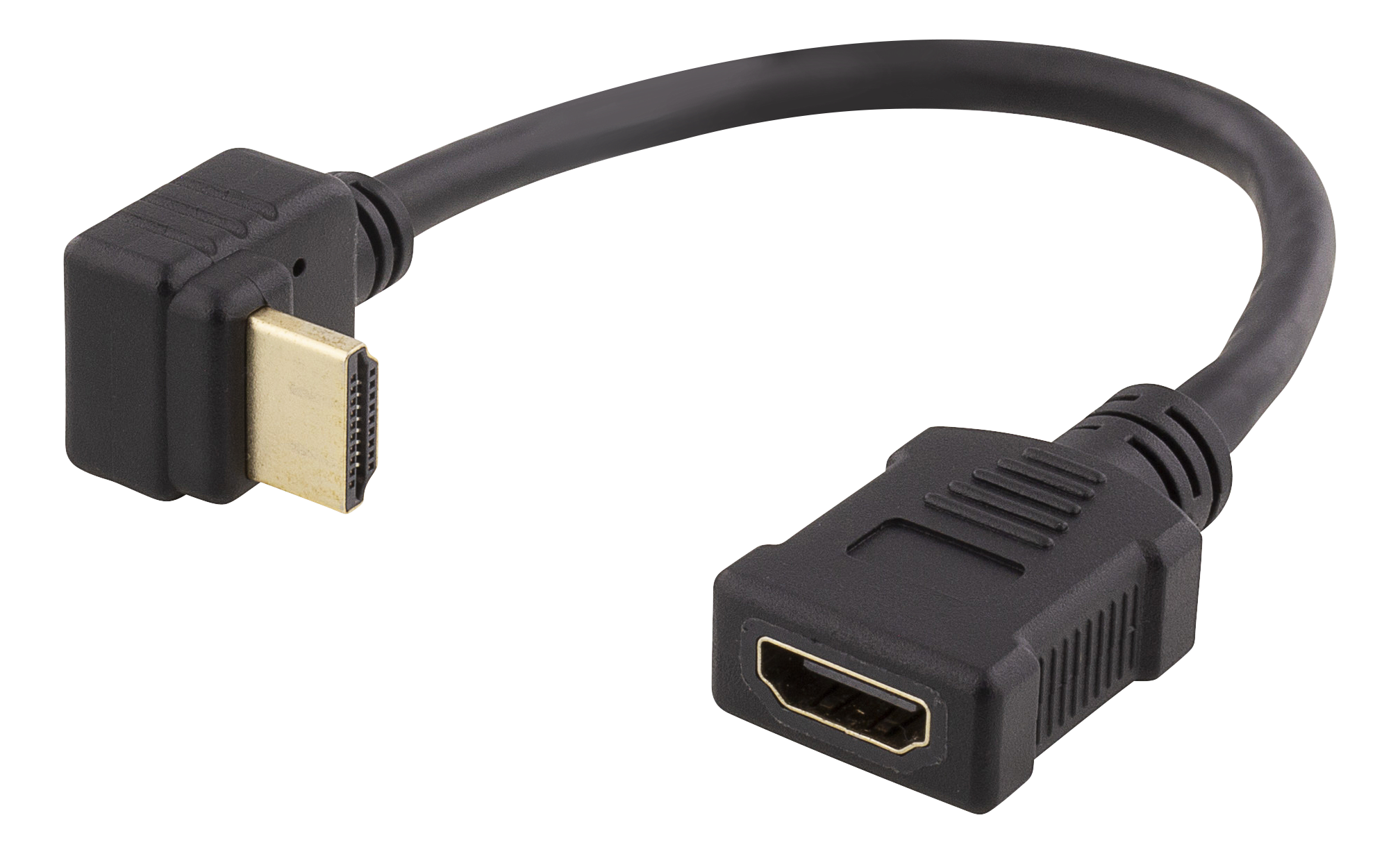 HDMI-förlängningskabel, vinklad nedåt, ha-ho, max 3840x2160@30Hz, 0,2 meter, svart