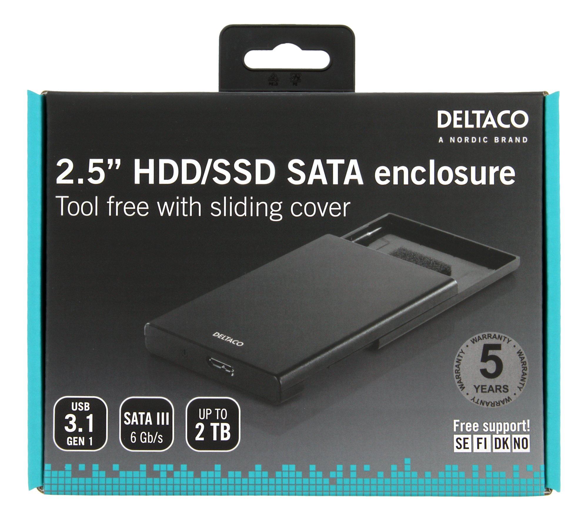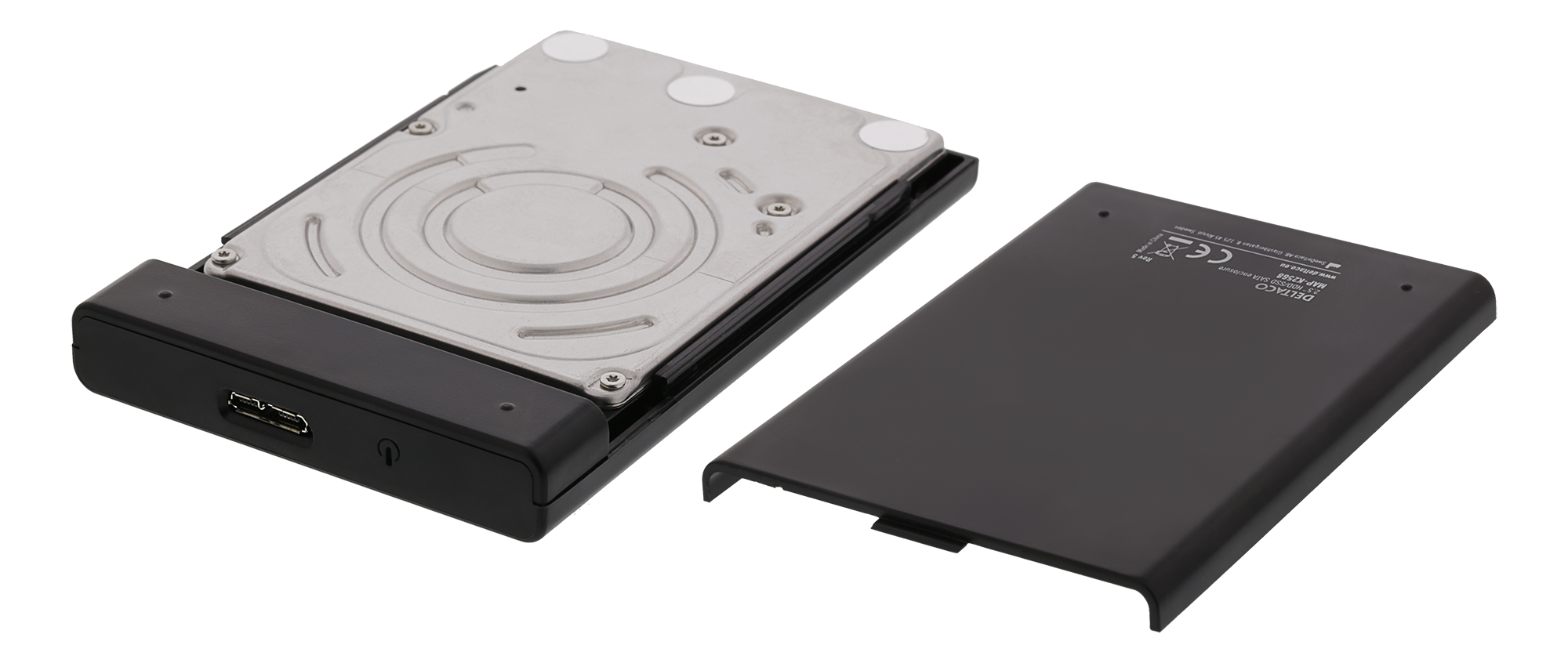 Ett tunnt och skyddade kabinett i hårdplast för en 2,5" SATA HDD eller SSD. Installationen är helt verktygsfri med hjälp av en lucka på undersidan av kabinettet. Skjut luckan bakåt och anslut din externa HDD/SSD till SATA kontakten på insidan. En mjuk förinstallerad skummgummikudde gör det möjligt att installera tunnare 7mm hårddiskar och SSD-er.
