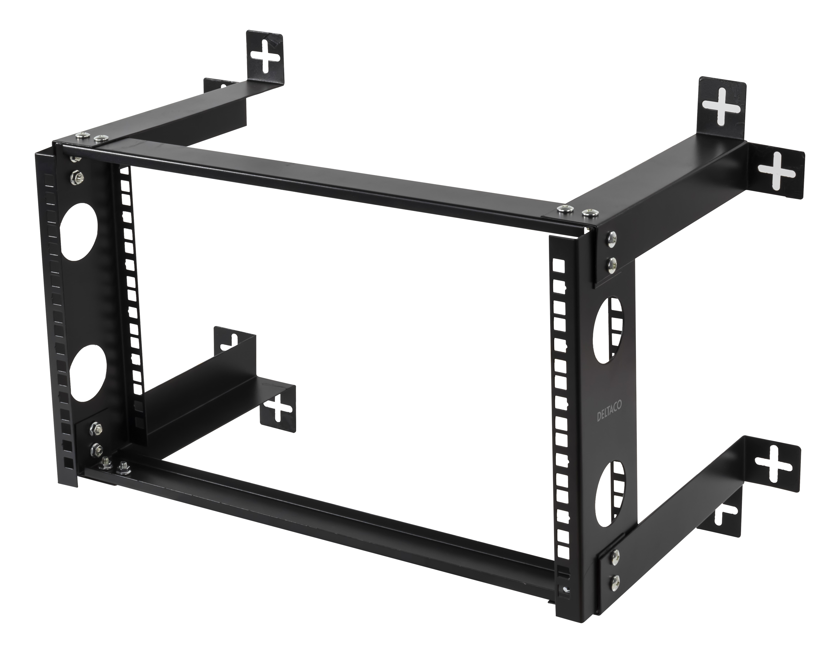 19” Väggstativ 6U, Deltaco, max 35kg last, stål, monteringssats - Svart