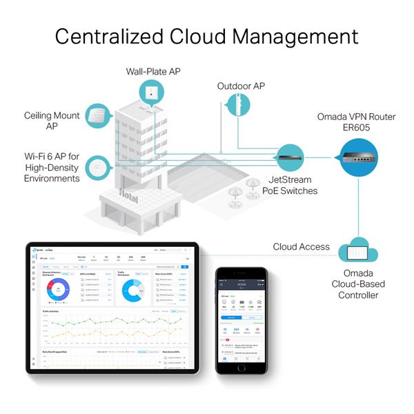 • Centralized Management: Cloud access and Omada app for ultra convenience and easy management.
