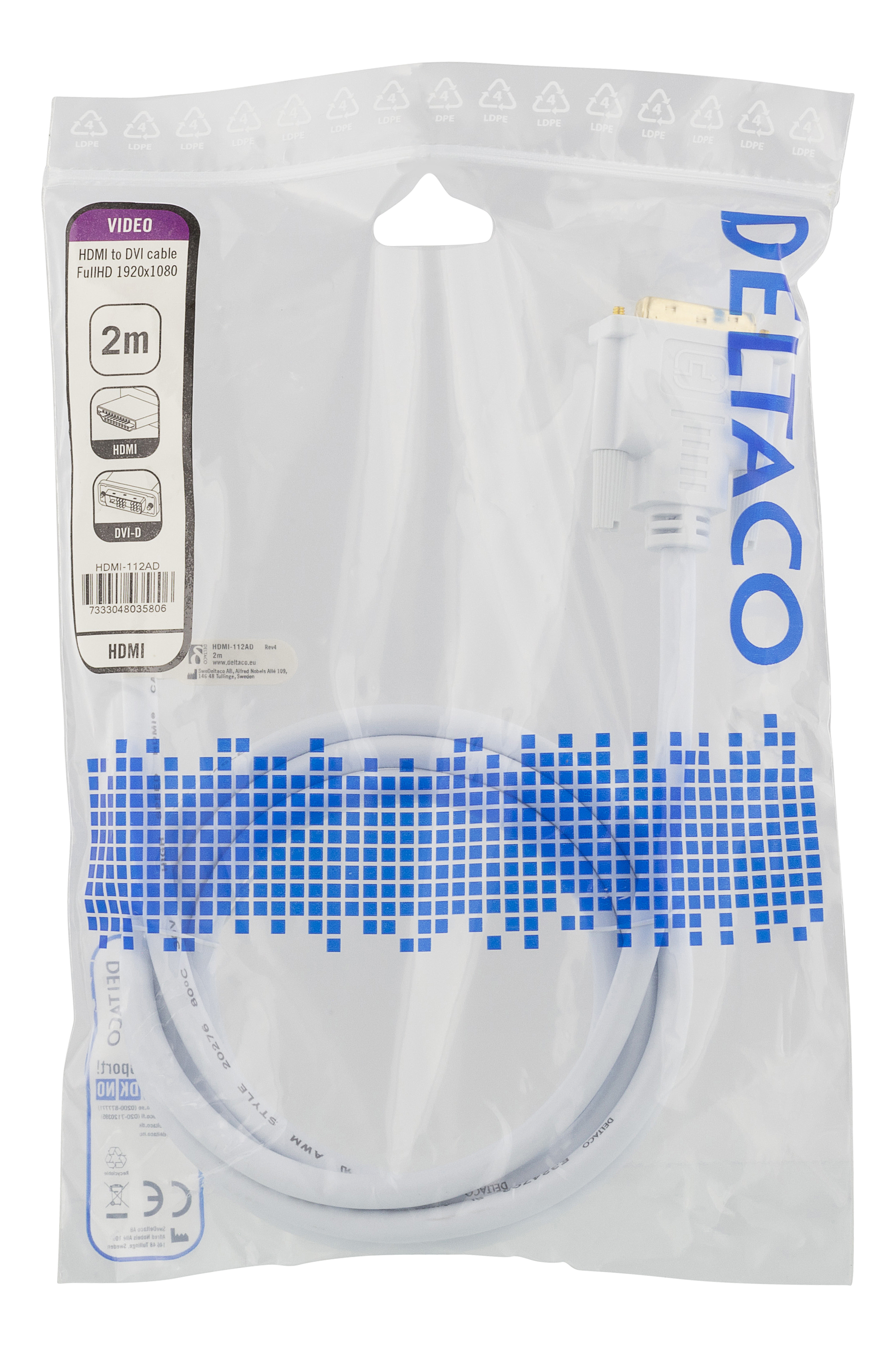 HDMI till DVI-D-kabel, 2 meter - Vit