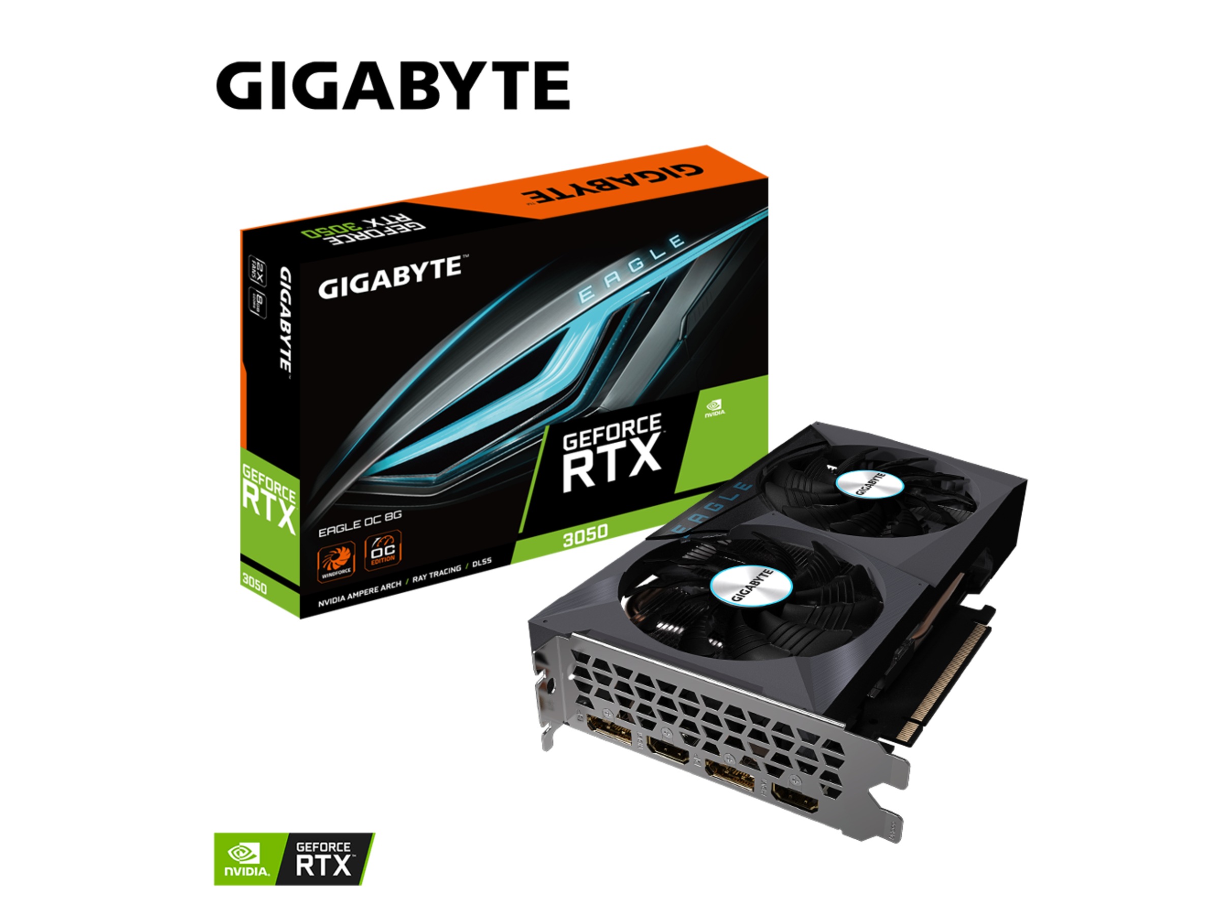 Nvidia RTX 3050 8GB GDDR6 2DP/2HDMI 7680*4320 1792MHz 2560CUDA 130/450W 4mon PCIe4 213mm 2-slot refurbished Gigabyte