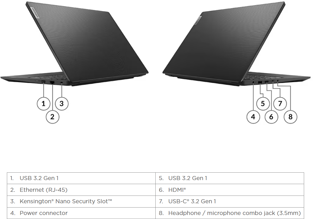 15tum 1920p V15 G4 Ryzen 5-7520U 16GB 512GB SSD cam USB-C/2USB3/HDMI/LAN/WLAN-ax/ljud Kensington W11P 1,63kg 1år-inskick