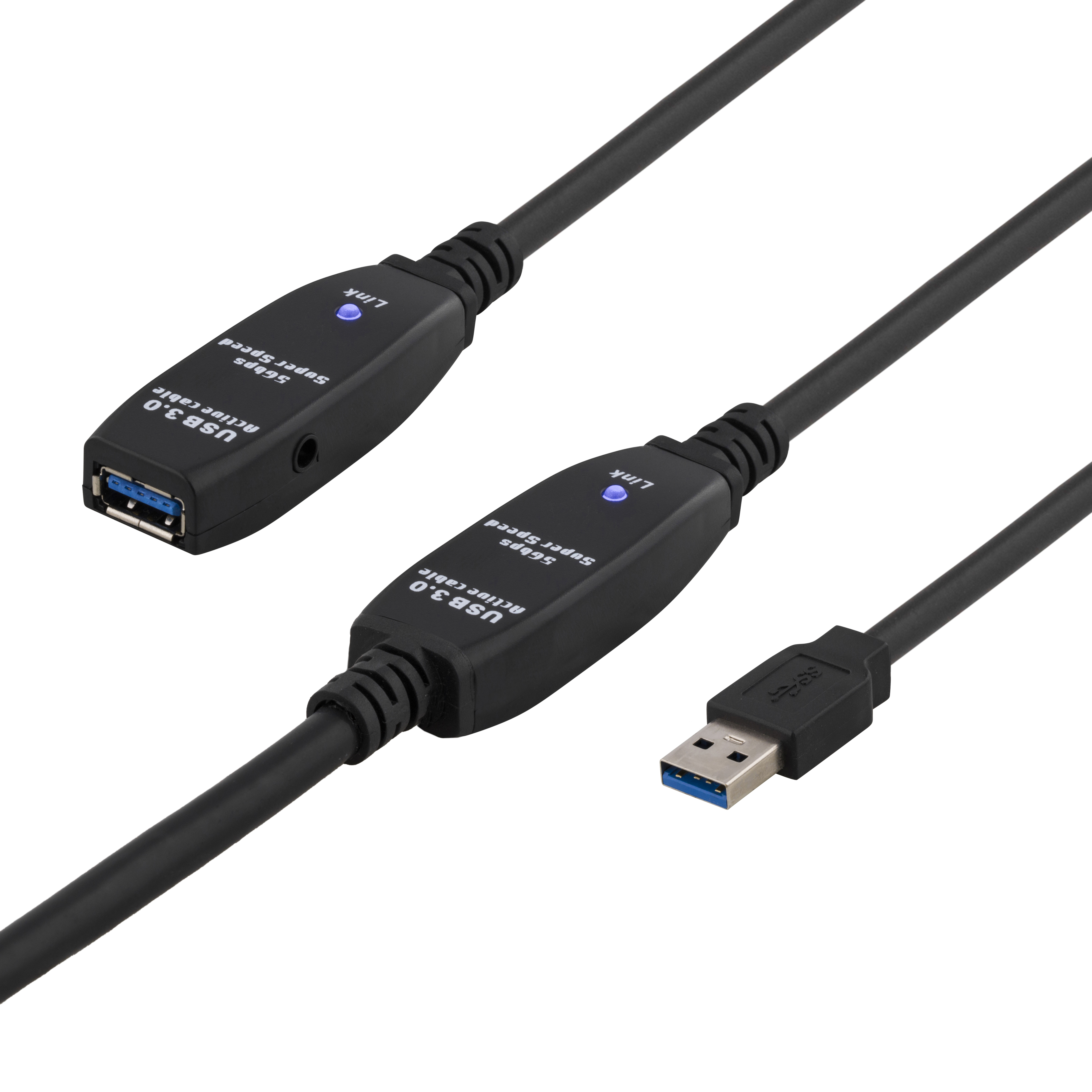 Förlängningskabel Deltaco PRIME aktiv, USB 3.0 Typ A ha till Typ A ho, 5 meter - Svart