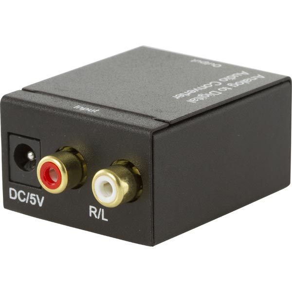 DELTACO ljudomvandlare från analog till digital, 2xRCA, koaxial, S/PDIF, svart