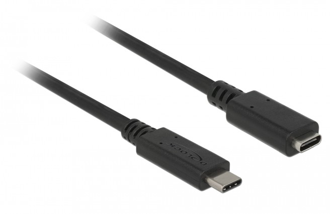 Förlängningskabel DeLOCK, USB-C ha till USB-C ho, USB 3.1 Gen.1, 2 meter - Svart