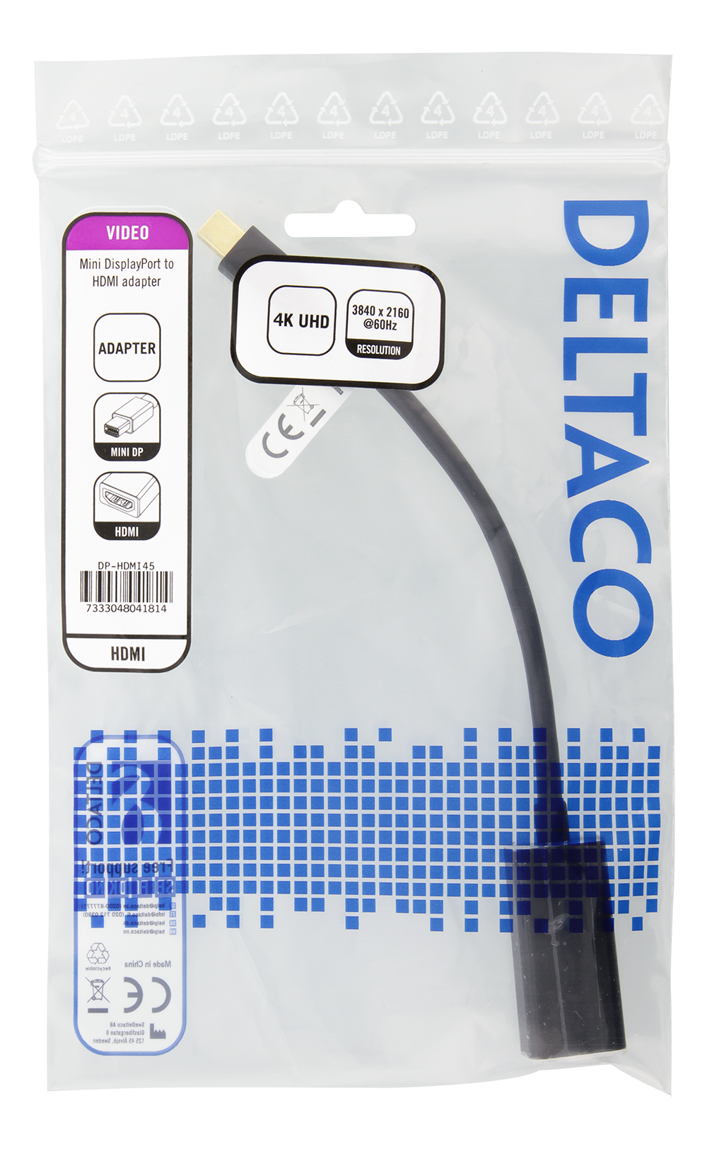 Adapter Mini DisplayPort till HDMI, 4K@60Hz, 0,2 meter - Svart