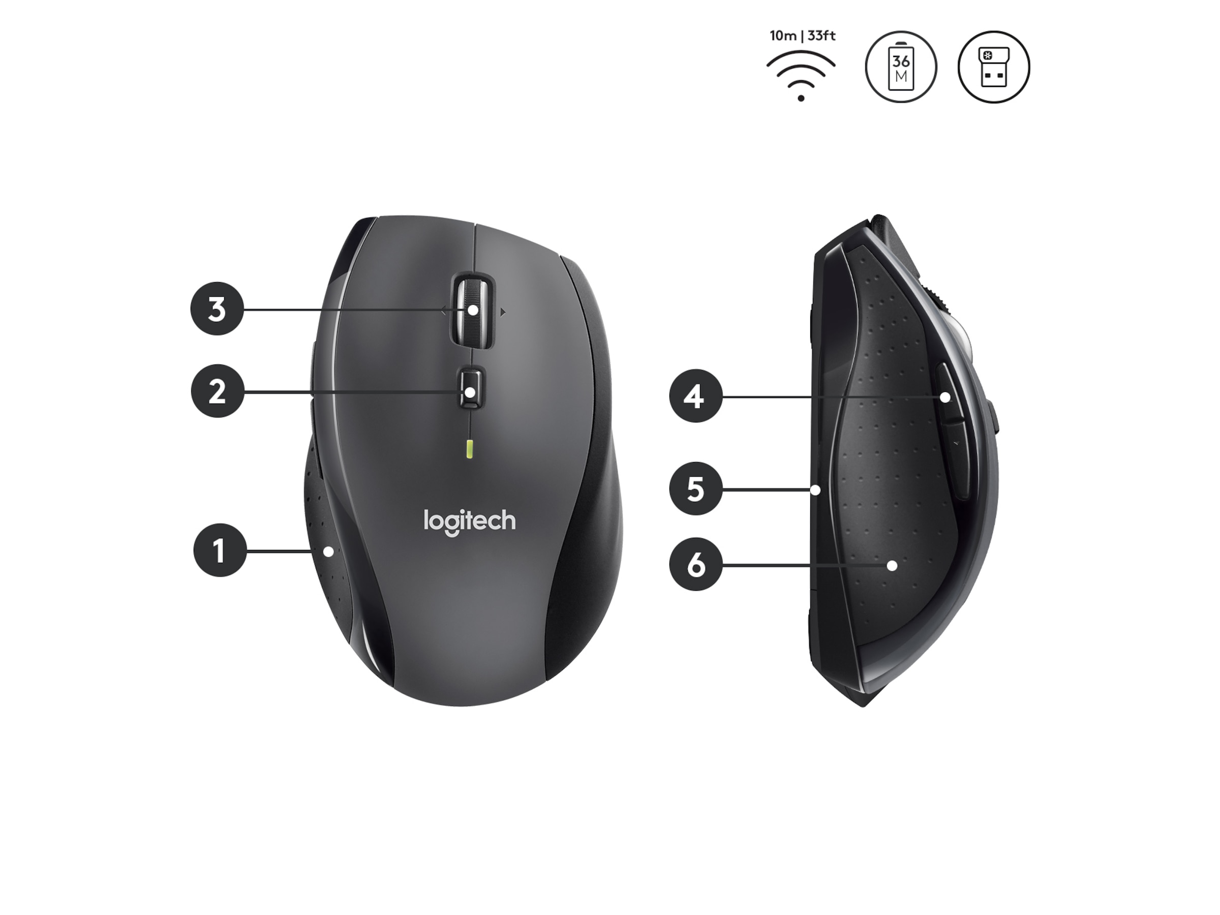 Logitech Marathon Mouse M705, USB nano-adapter - Charcoal