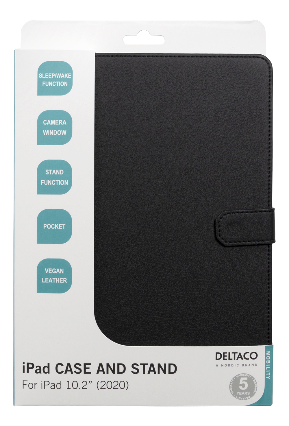 Deltaco fodral för iPad 10.2" (2020), veganläder, magnetlåsning, stödfunktion - Svart