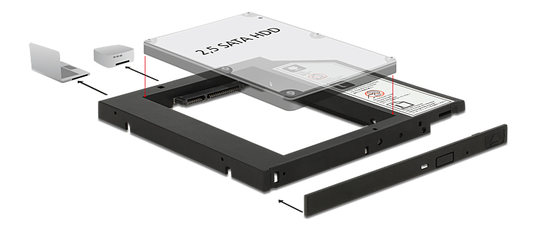 Monteringsram DeLOCK 2,5" SATA-hårddisk till 5,25", 9,5mm - Svart
