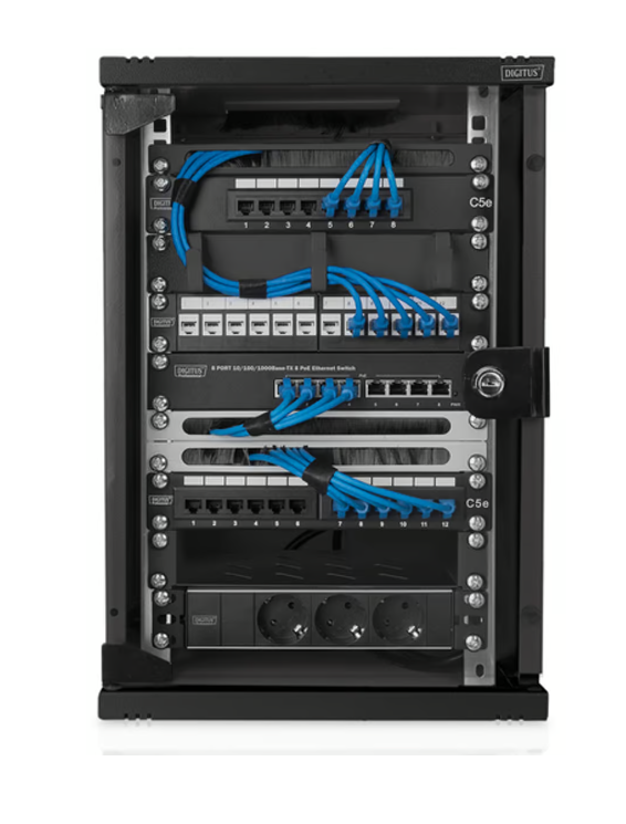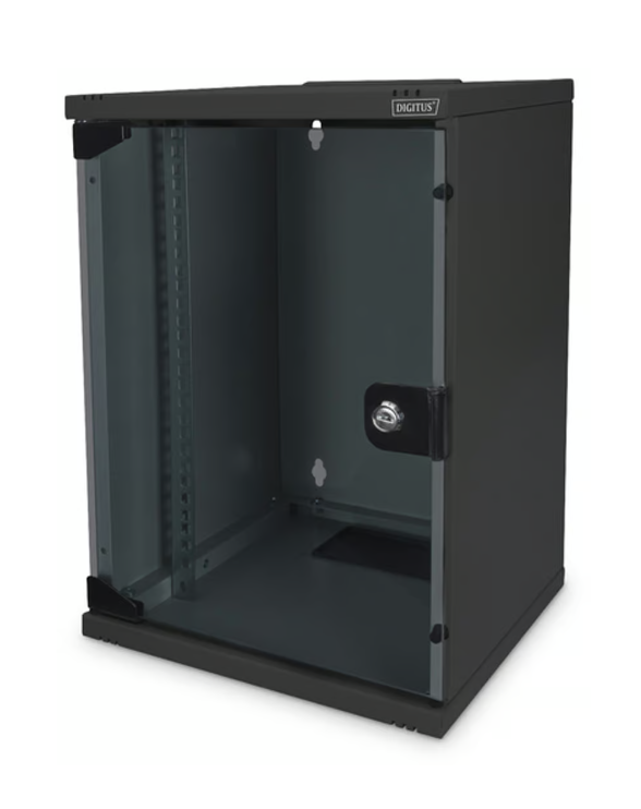 10" Skåp Digitus 9U, 312x300x464 mm (BxDxH), stående eller väggmonterat, glasdörr, lås - Svart