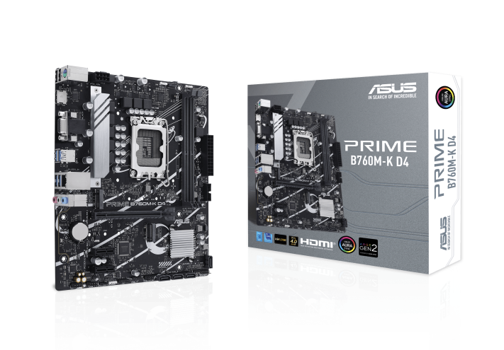 Asus Prime B760M-K D4, Intel LGA1700, PCI Express, MicroATX, 2xDDR4, M.2 + SATA3 RAID, VGA/HDMI, USB 3.2, 2.5Gbe LAN