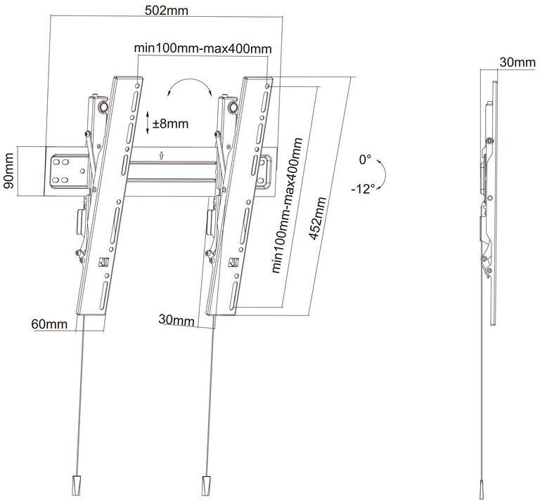 At only 30mm the M VESA Wallmount Super Slim Tilt 400 MAX our Multibrackets designers takes the super-slim TV mounts to a new level. With close to no gap wall distance turns your TV into a picture on the wall. The innovative fine tuning design allows for easy post-installation positioning. The tool less tilting mechanism will greatly reduce eye and neck pain and annoying sun glare for perfect viewing experience. Also, the magnetic design in the bracket and the strap end also add a modern look to your house.