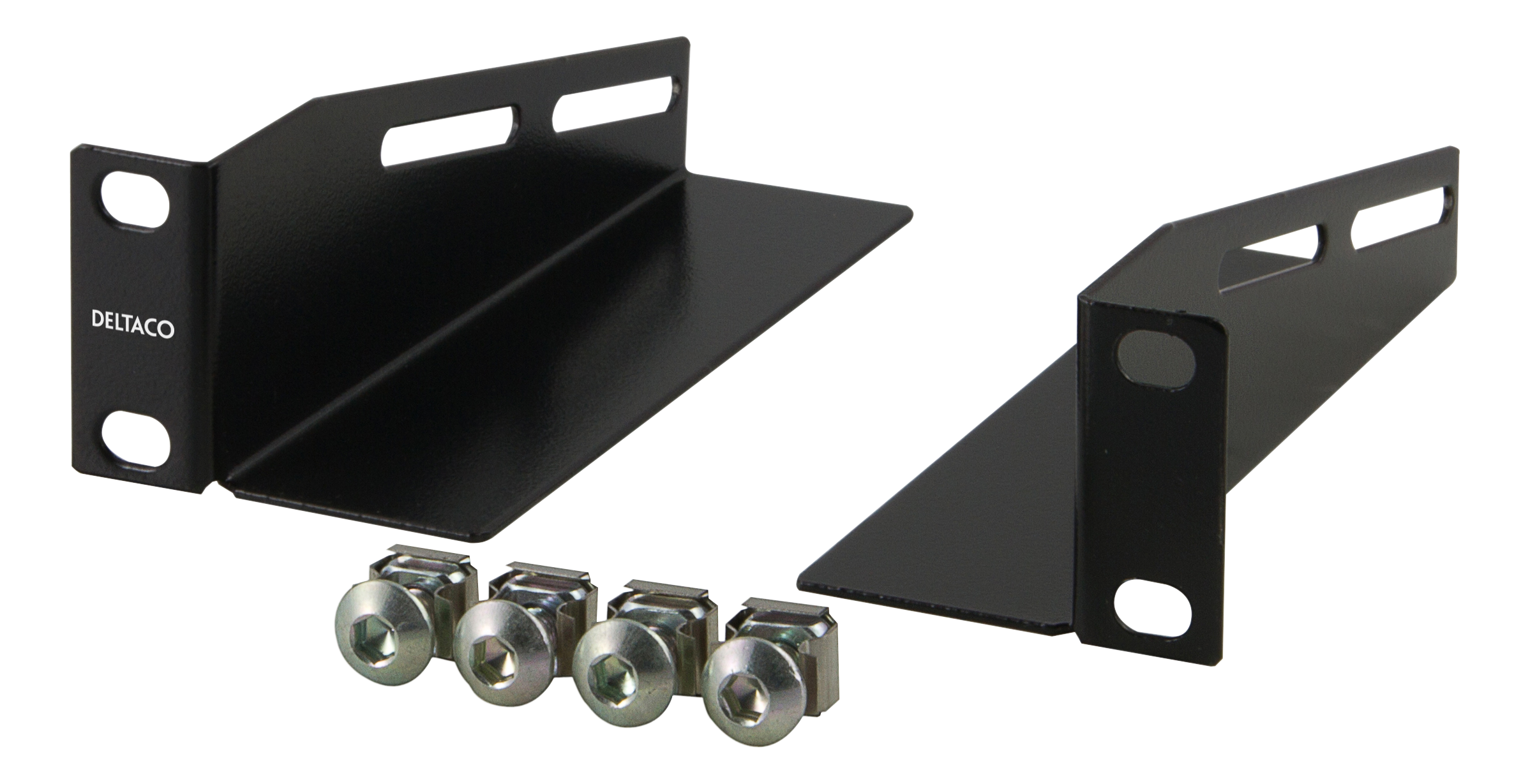 DELTACO L-stödskenor för 10"-skåp, 136mm, 2-pack, svart