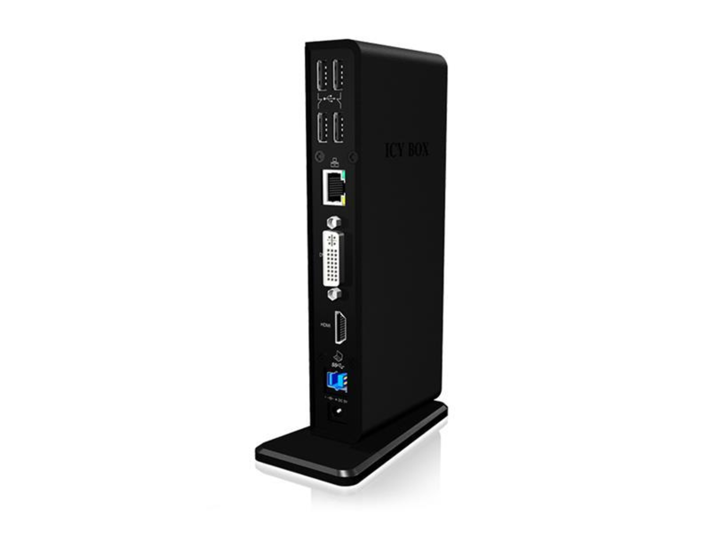 USB 3.0 dockningsstation ICY BOX IB-DK2241AC, DVI/HDMI, hörlur/mikrofon, GigaLAN, 6xUSB