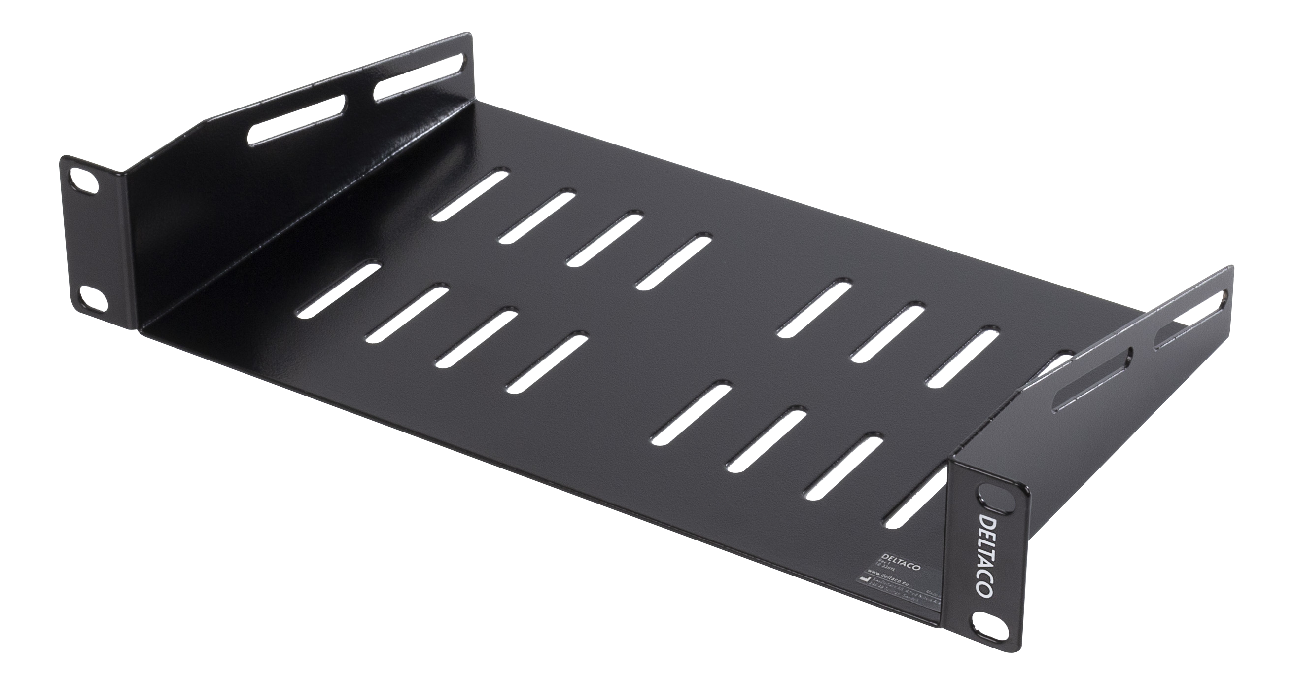 DELTACO 10" fast hylla, 1U, 136mm djup, svart