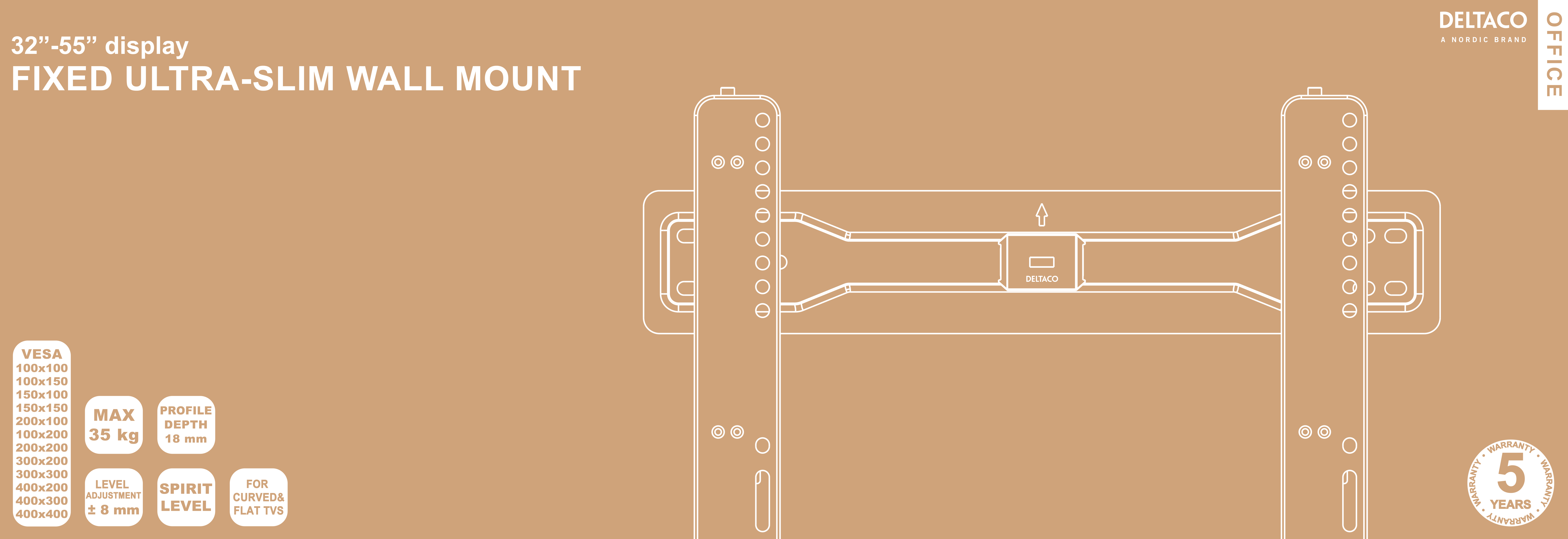DELTACO OFFICE Fixerat väggfäste, Ultra-Slim, 32"-55", 35 kg, svart