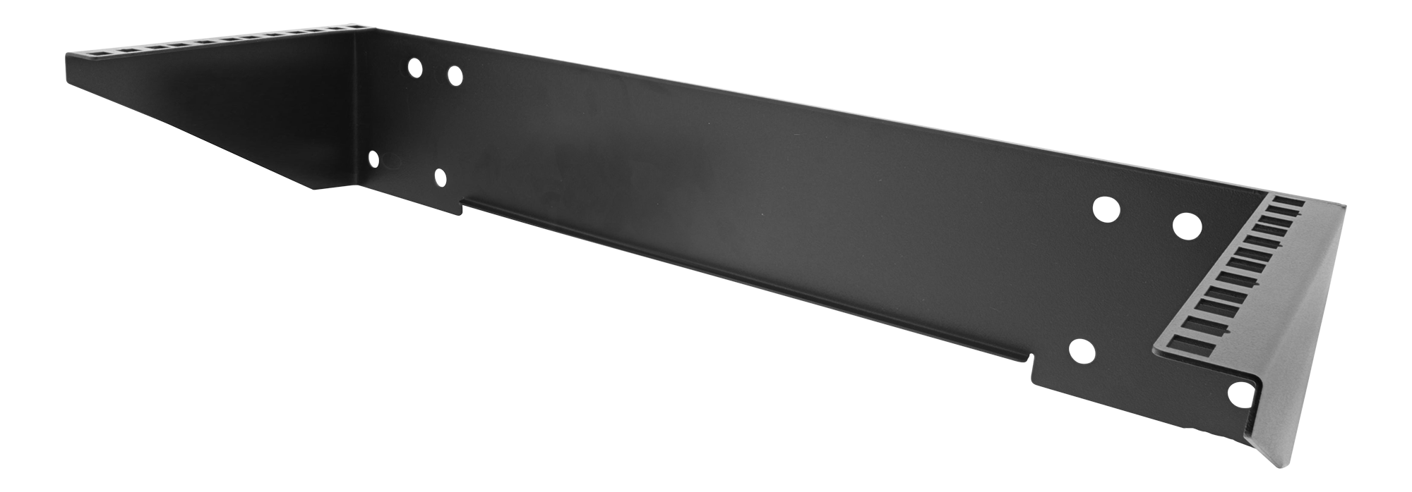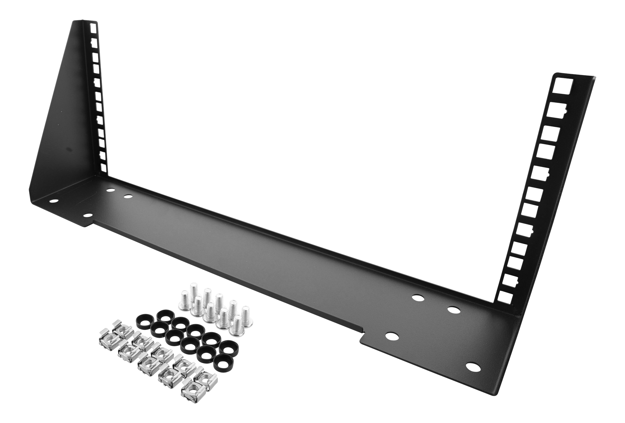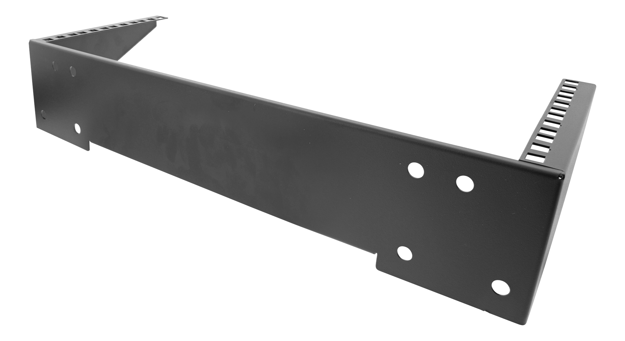 Vertikalt väggfäste med en höjd av 4U för att kunna installera switchar, patchpaneler eller andra 19"-enheter på väggen. Går även bra att använda under ett bord som illustreras i bilderna.