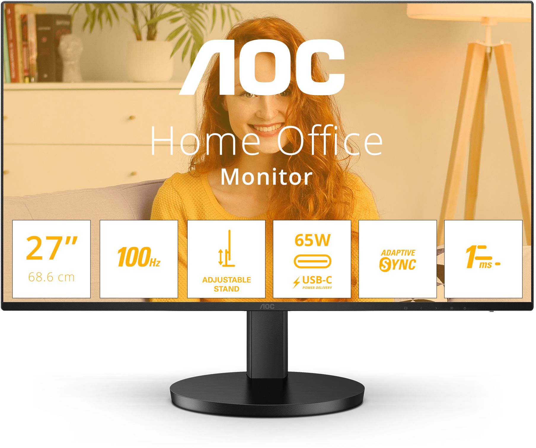 27" AOC Q27B3CF2/23, IPS 2560x1440, 1 ms, 100Hz Adaptive-Sync, höjdjusterbar, HDMI/USB-C 65W, högtalare, USB 3.2-hubb