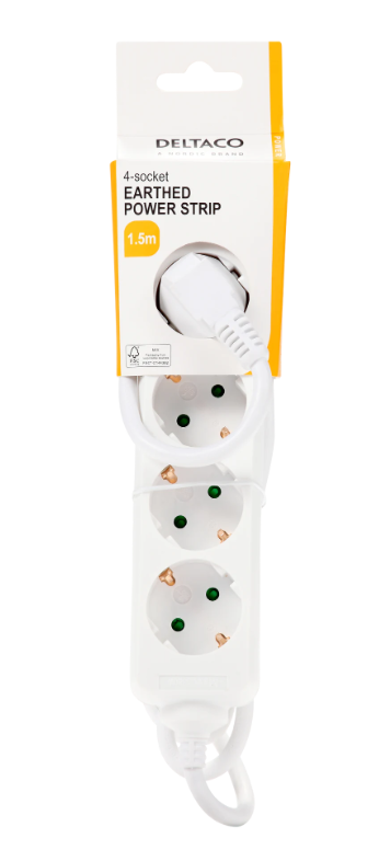 Grenuttag DELTACO med 6 st jordade uttag, 1,5m - Vit