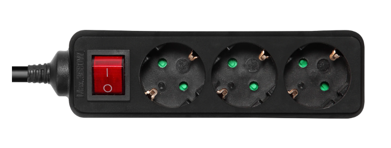 Grenuttag DELTACO med 3 st jordade uttag, 1,5m - Svart