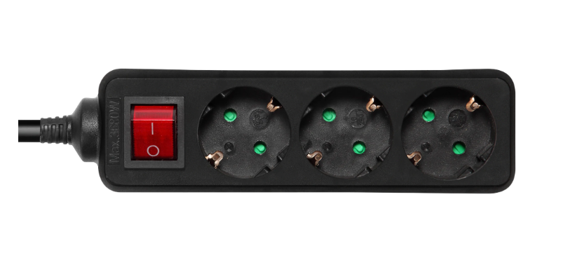 Grenuttag DELTACO med 3 st jordade uttag, brytare, 3m - Svart